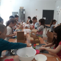 A látványkonyhában sütidobozból elővarázsolt kekszeket díszítettünk és a mesebeli Jancsihoz és Juliskához hasonlóan, meg is kóstolhattuk a frissen elkészült finomságainkat.