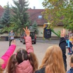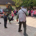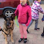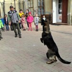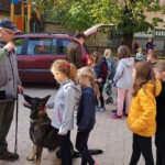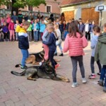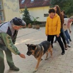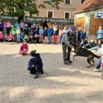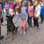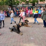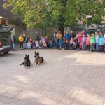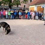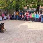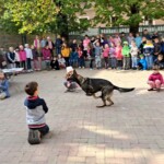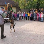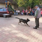 Délelőtt folyamán 1. és 2. osztályos gyermekeknek, a kisépület udvarán, kutyabemutatót tartott Szántó István, az Alfadog Kutyaiskola vezetője.