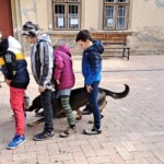 Tanulók örömére a bemutató végén, aki akarta, meg is simogathatta a kutyákat.