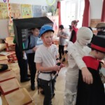 Alsós tanulóink osztályonként öltöztek be. A remek hangulatot fokozták a tanító és a napközis kollégák vidám jelmezei.