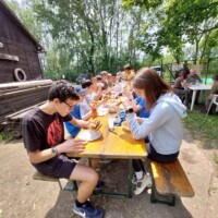Nemcsak horgásztak, célba dobtak, tesztet töltöttek ki a diákok, hanem kapásjelző karikát fűztek és 1 kg-os horgásztápot tartottak időre. Délben megkínáltak bennünket finom hamburgerrel és paprikás krumplival.