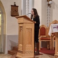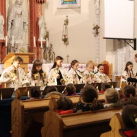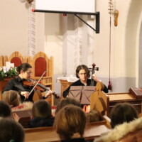 verset mondott – Cirkos Adél 7.b, zenélt – Császi Krisztina 8.a és Ruzsovits Léna 8.b (hegedű, cselló), ezt követően iskolánk harangegyüttese lépett fel – vezényelt: Zsilinszly Cecília tanárnő,