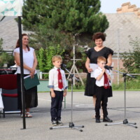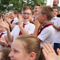 Tanévünk lezárásának ünnepe jelképezte a tanévet is: nem túléltük, hanem szépen megéltük, Isten áldásával és összefogással. Minden résztvevő örömére és elégedettségére, az Úr szolgálatában. Az ünnepség felemelő pillanatokkal kezdődött: a ballagó nyolcadik osztályok bevonulásával. „Kell még egy szó, mielőtt mennél”. A Himnusz közös eléneklését követően Excellenciás és Főtisztelendő Dr. Udvardy György érsek atya köszöntötte iskolánk közösségét. Ezt követően búcsúzó nyolcadikos tanulóink verssel és prózával köszöntek el iskolánktól. Iskolánk igazgatója Eveli Péter tanévzáró beszédében értékelt, útravalót adott és megköszönte a munkát. Ezt követően szólítottuk és díjaztuk az országos és regionális versenyeken szép eredményeket elért tanulóinkat, a főegyházmegyei díjazottakat. Ünnepi műsorvezetőnk Nagy Marianna tanárnő osztályonként ismertette kitűnő tanulóinkat (113 fő). Átadásra került iskolánk Szilágyi- és Bolyai-díja is, melyeket idén Gelléri Gábor 8.a és Szerdahelyi Áron 8.b osztályos tanuló kapott. Ünnepségünk felemelő pillanata volt két első osztályos tanulónk verse a vakációról. Főtisztelendő Dr. Csernai Balázs lelki igazgató atya ünnepi gondolataival köszönt el a nyári szünetre. Ünnepélyünk végén iskolánk közössége és egybegyűlt kedves vendégeink Főtisztelendő Érsek atya áldásában részesültek.