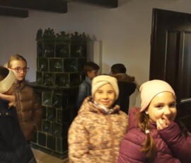 A nap további részeként ellátogattunk a Bakonyi Házba, ahol a gyerekek a régi bakonyi élet tárgyait és hagyományait ismerhették meg. A jellegzetes berendezés és a barátságos környezet segített még közelebb kerülni a múlt világához.