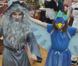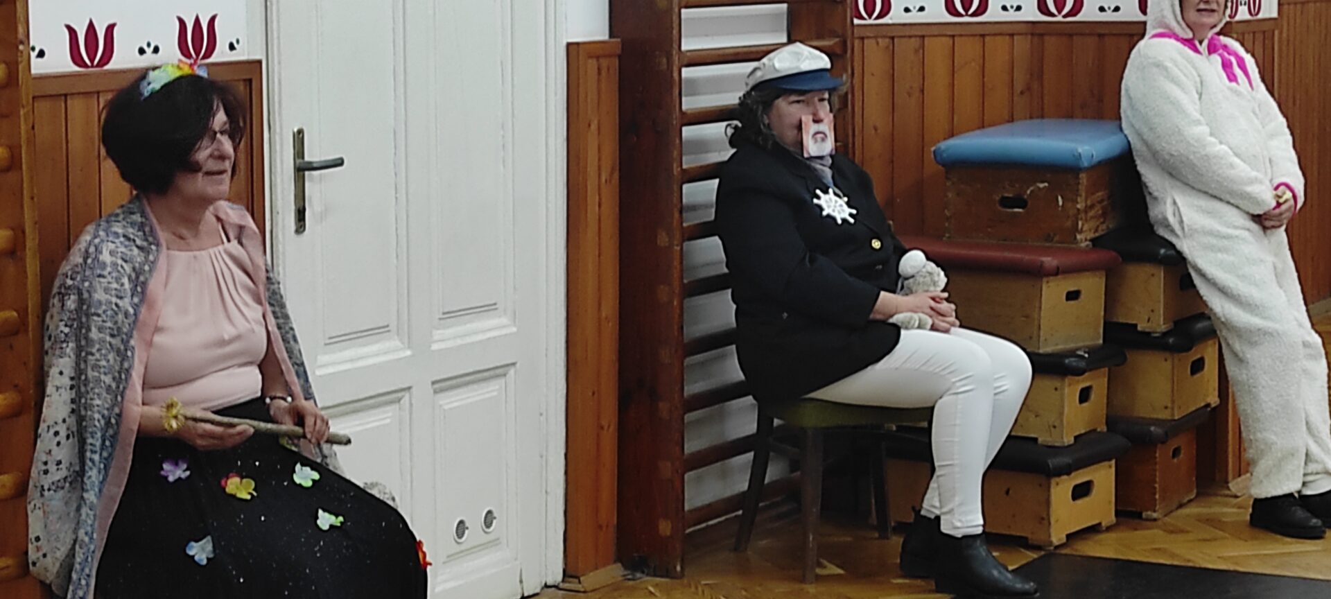 Szebbnél szebb, ötletes jelmezbe bújt kisgyermekek nevetése töltötte be a fő-, és immár a kisépület falait. Színesítette a napot limbózás, jelmezverseny, tombola, kacsatánc, „székfoglalós” játék. Persze a sok-sok finomság sem hiányozhatott ezen a délutánon. Elbúcsúztattuk a telet, jöhet már a tavasz!