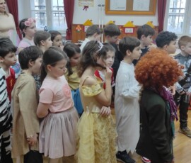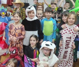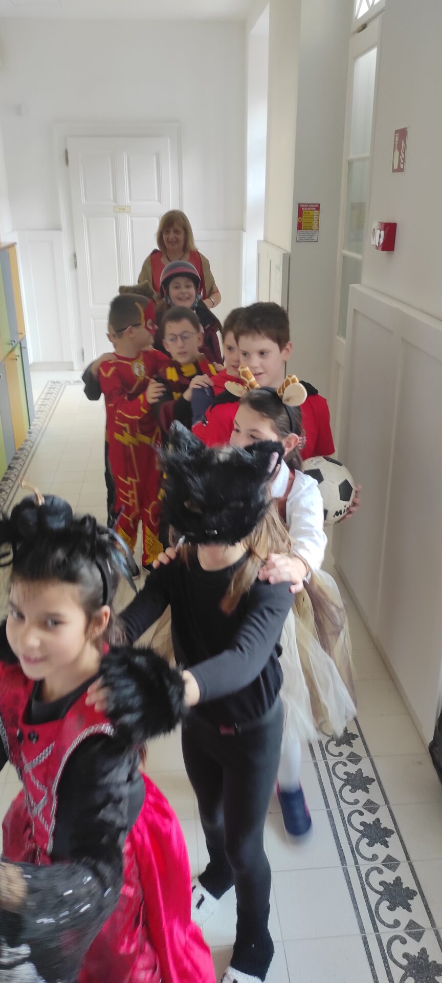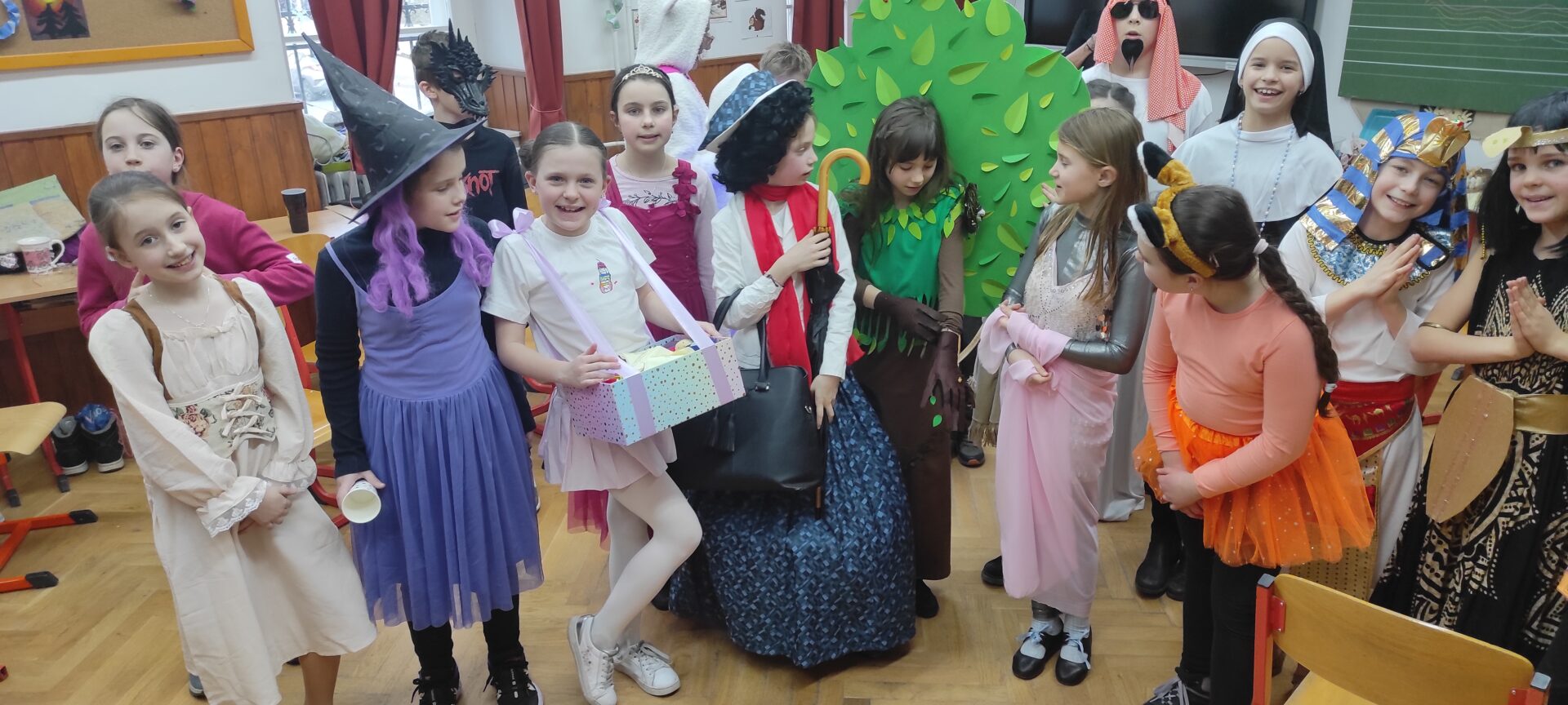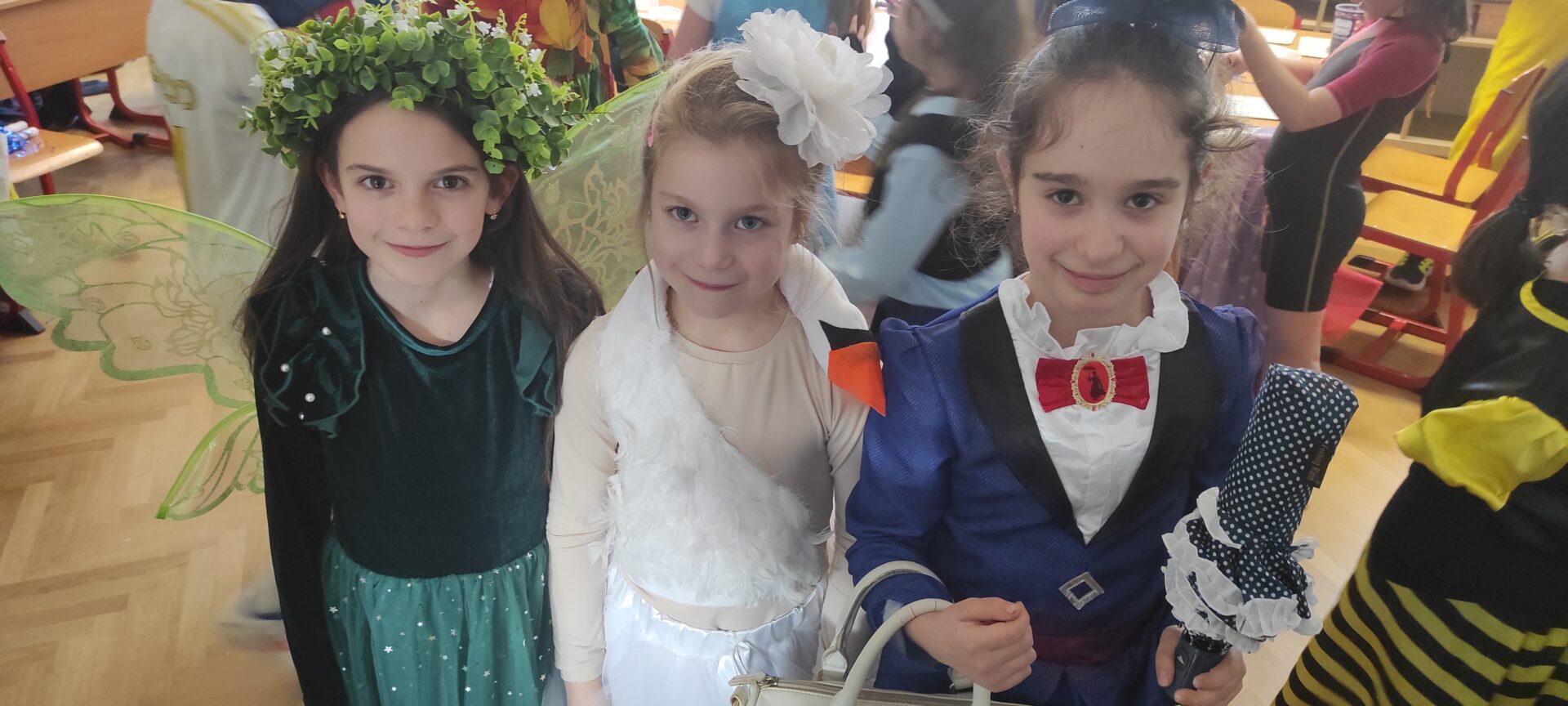 Iskolánk legkisebbjei nagy izgalommal várták farsang napját. Az alsós közösség apraja-nagyja tarka díszbe öltöztette iskolánk termeit: álarcok, bohócok, szerpentinek jelezték a nagy nap közeledtét.