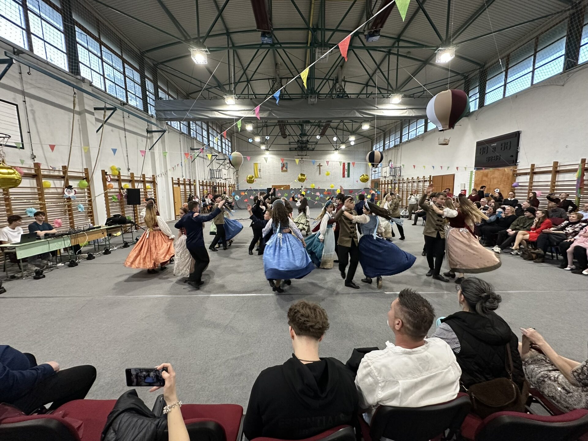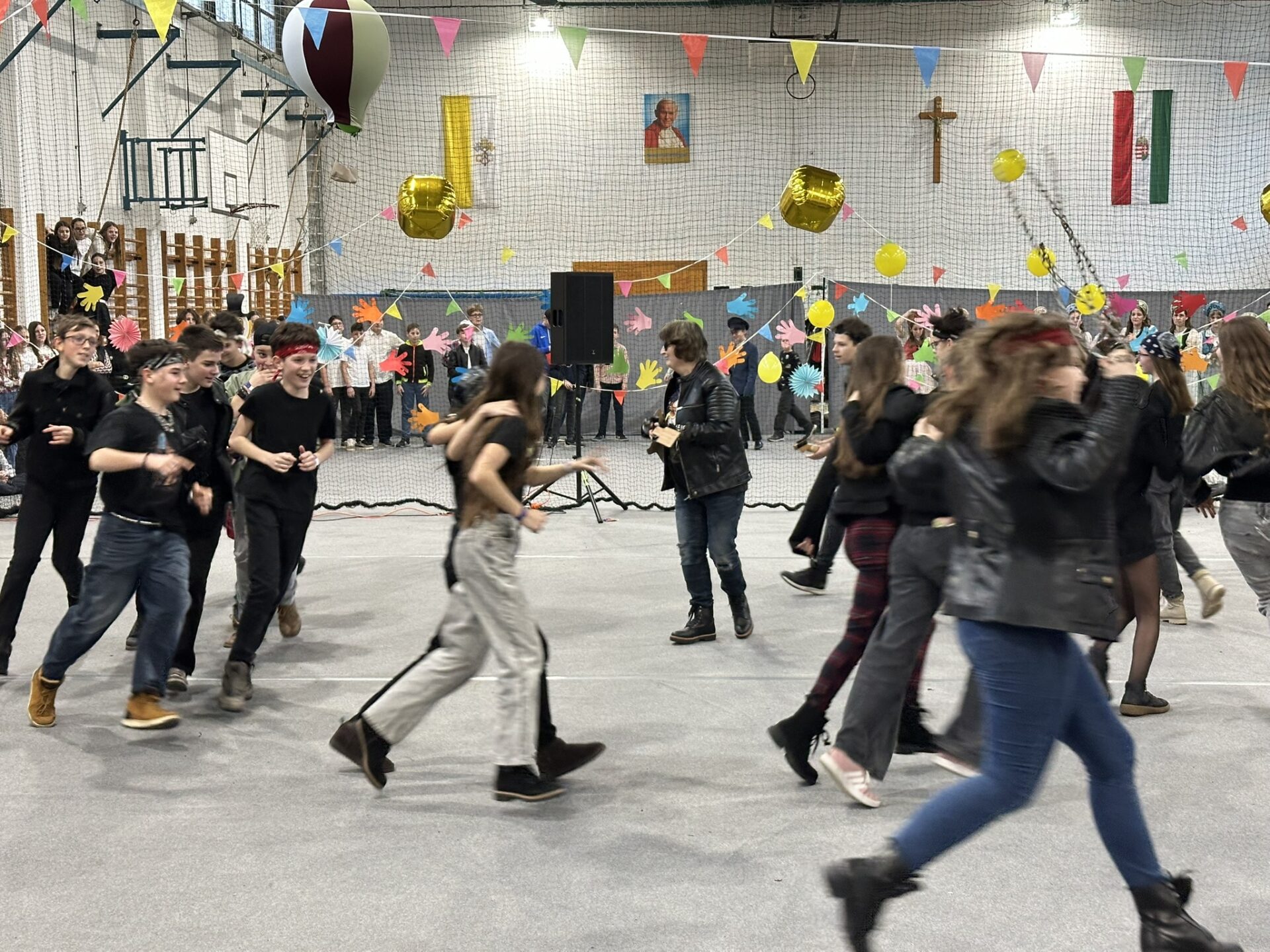 A felsős farsangot idén a hagyomány és a megújulás jegyében szerveztük meg a sportcsarnokban.